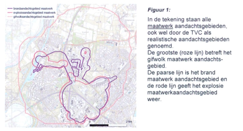 Op de bijgeleverde kaarten is een grote zone zichtbaar ‘gifwolk maatwerk